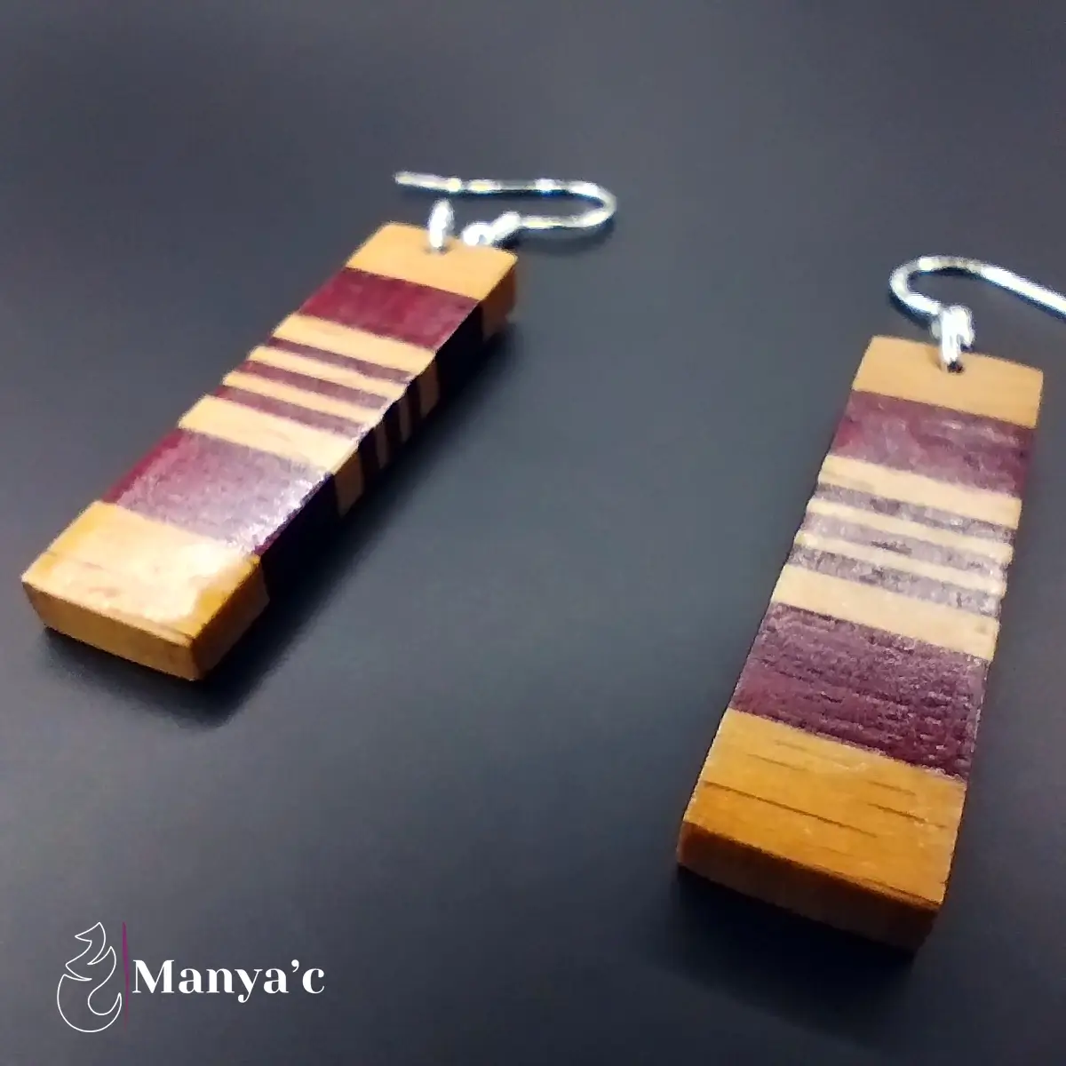 Harmonia est une série limité de boucles d’oreille en bois de hêtre et d’amarante. La couleur naturelle de ces bois offre un contraste saisissant. La forme en lingot apporte un style à la fois classique et distingué.