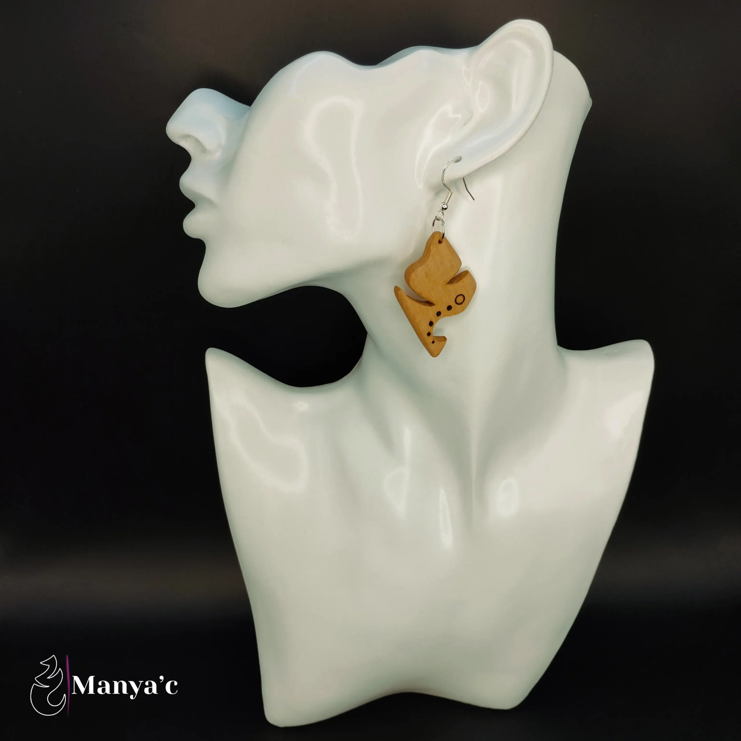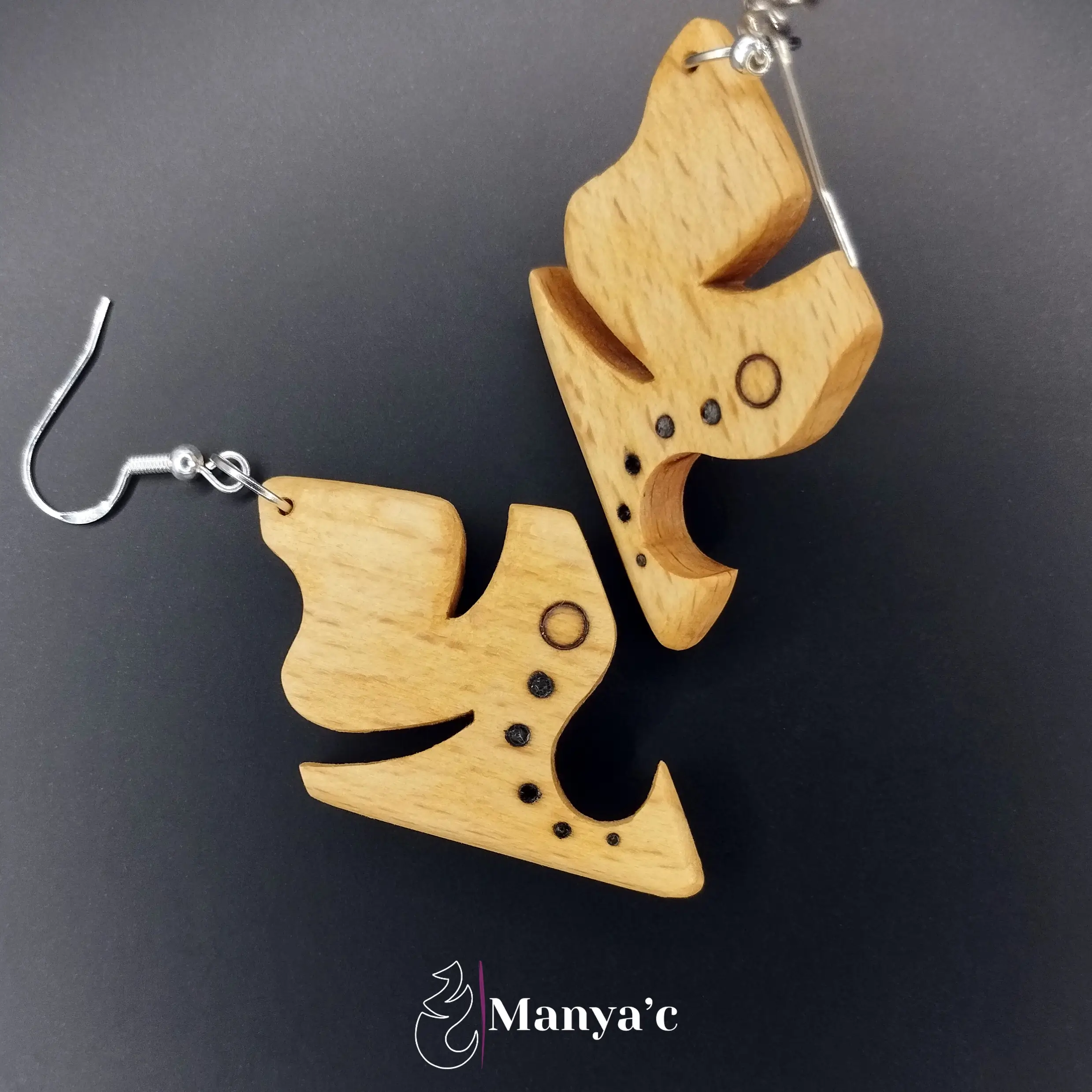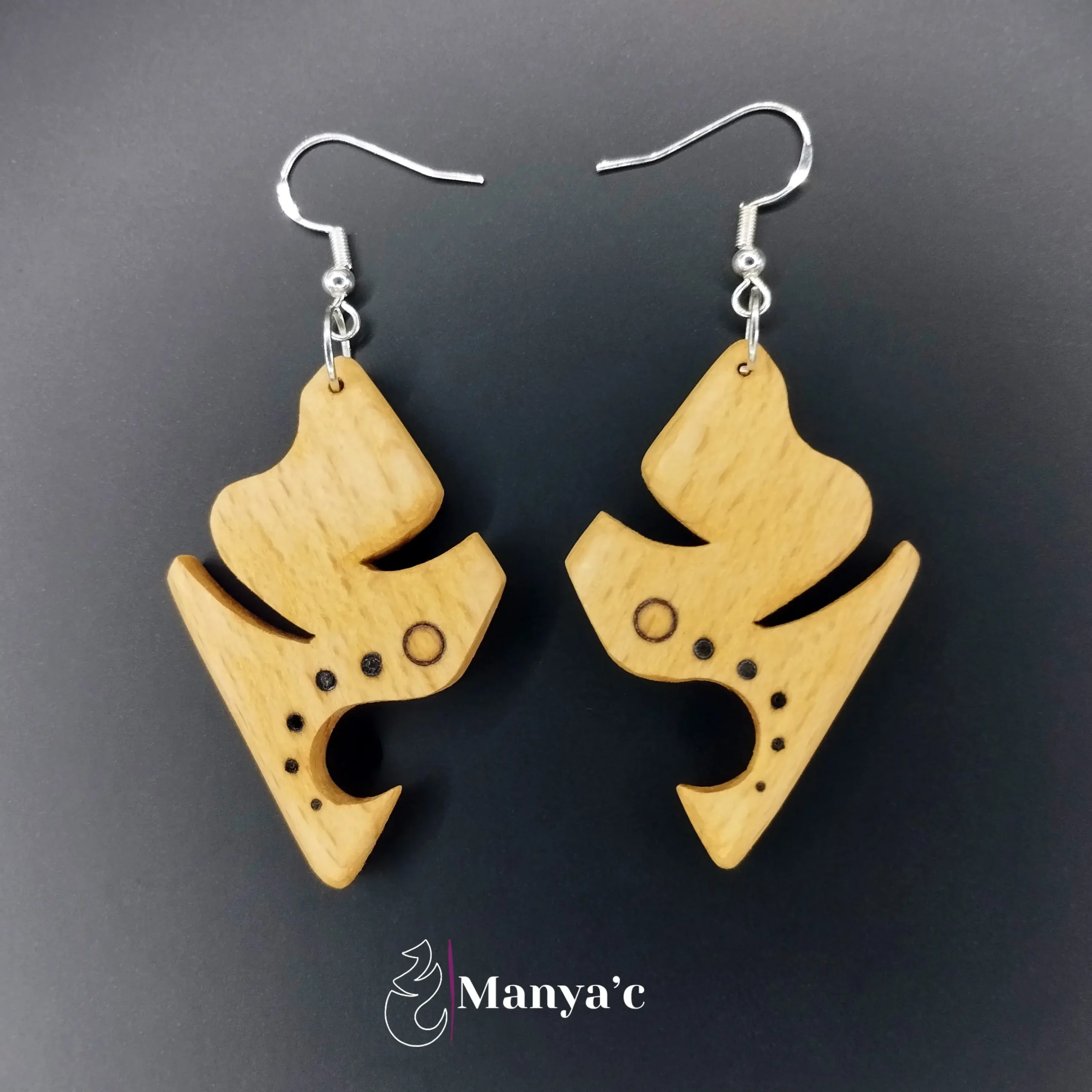 Le bois brûlé par la pyrogravure apporte un contraste saisissant à ce bijou.
