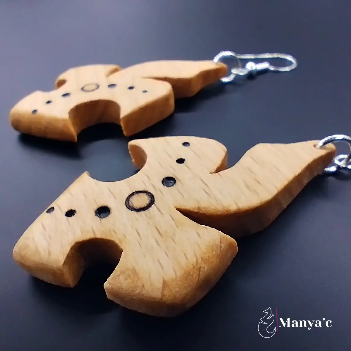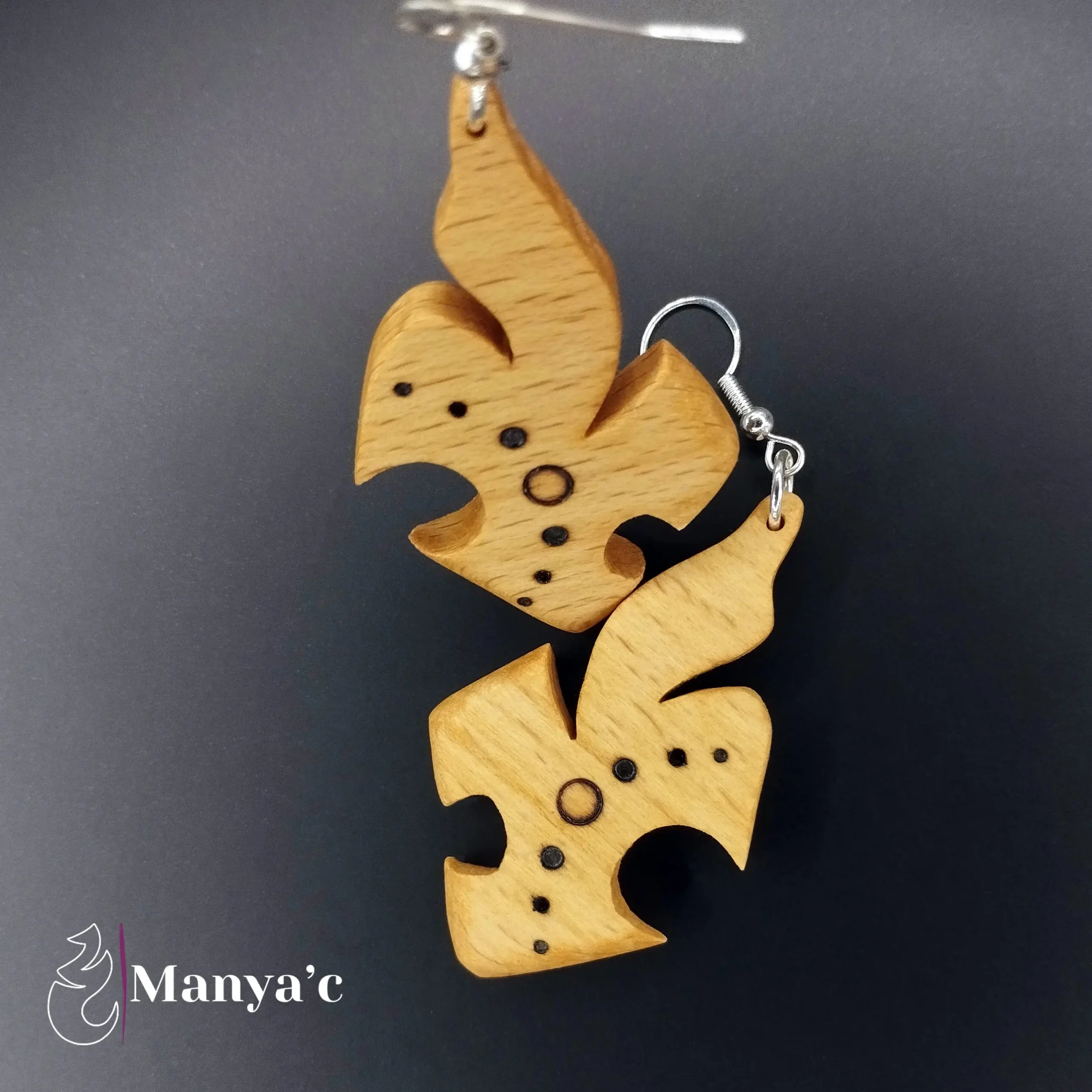 Le bois brûlé par la pyrogravure apporte un contraste saisissant à ce bijou.