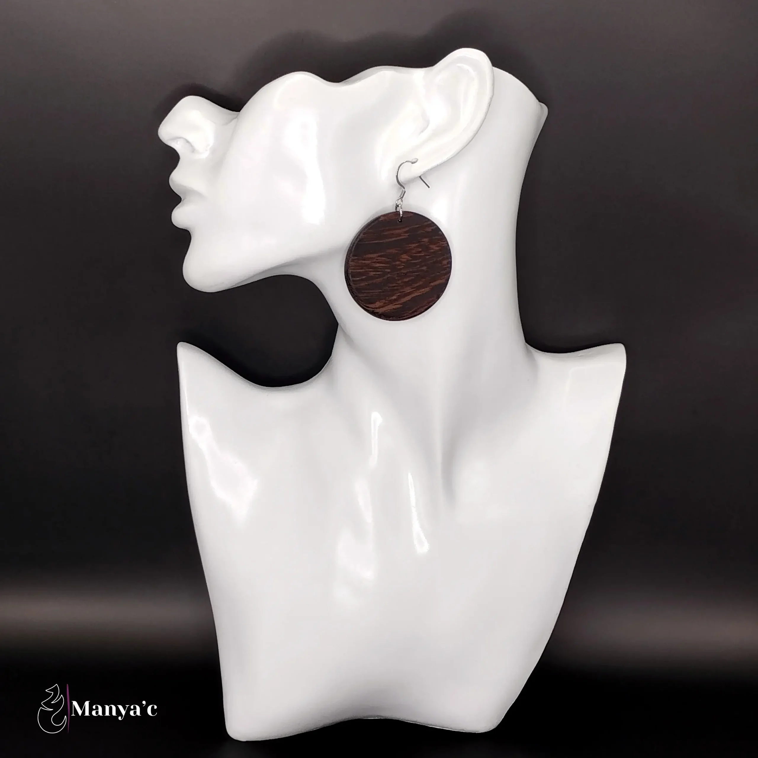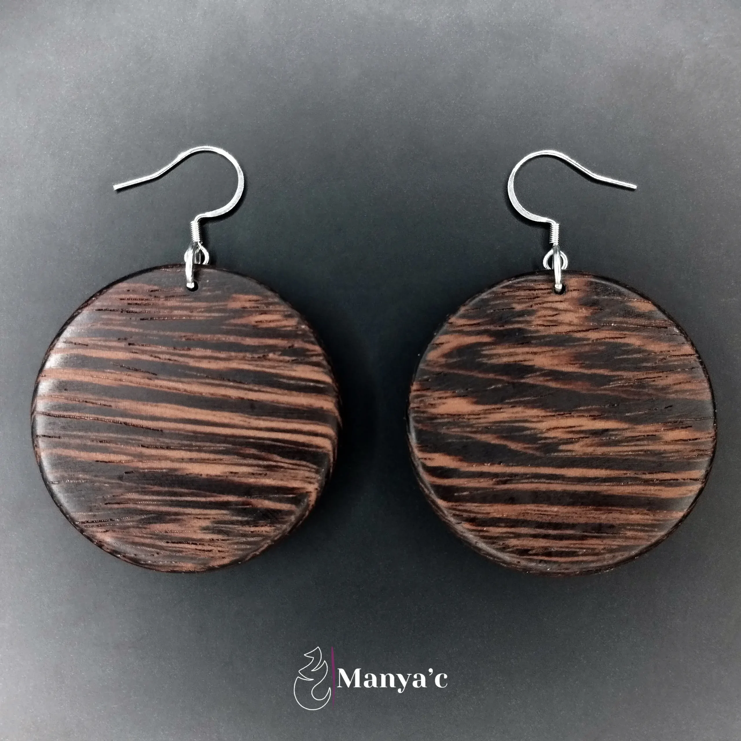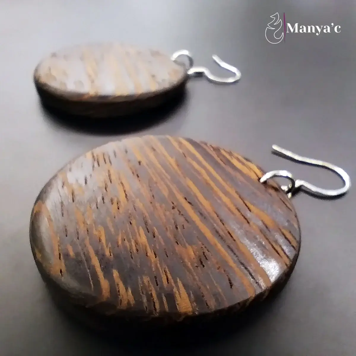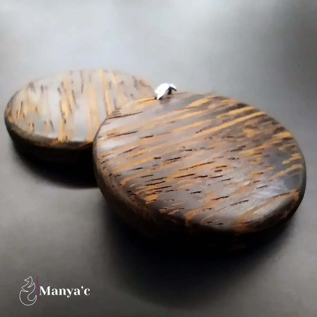 La collection de bijoux Nobilis se distingue par le choix délibéré d’adopter des formes épurées, pour révéler avec simplicité la splendeur naturelle du bois. Ce bois noir est clairsemé d’un veinage brun qui confère à ce bijou un aspect marbré.
